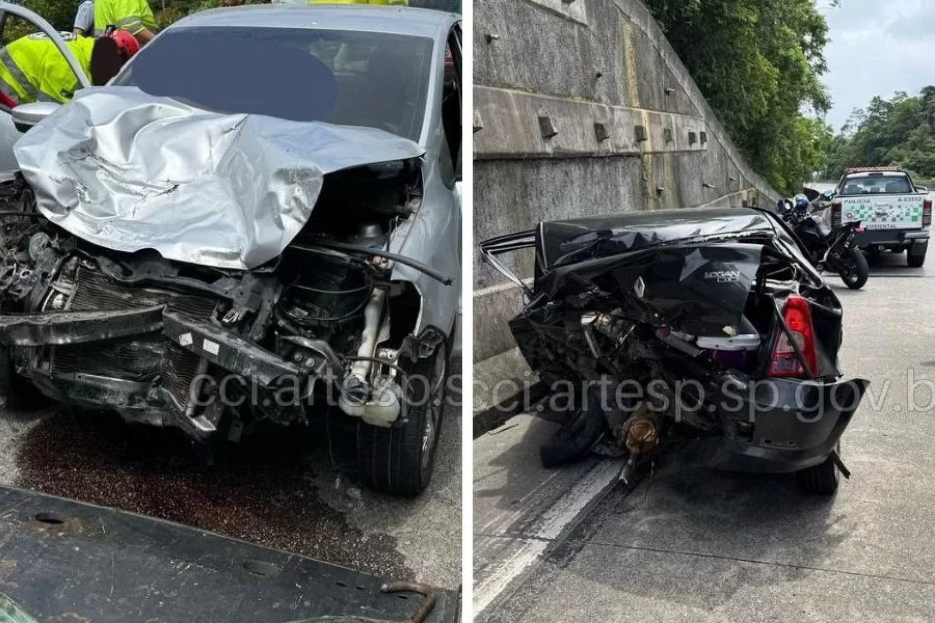 Enquanto isso, a mulher de 29 anos, que levava seu filho de 3 anos e uma amiga, decidiu trafegar pelo acostamento. Em uma manobra fatal, ela colidiu violentamente com o Logan, prensando-o contra a mureta de concreto. O impacto foi devastador e aconteceu exatamente às 10h10.